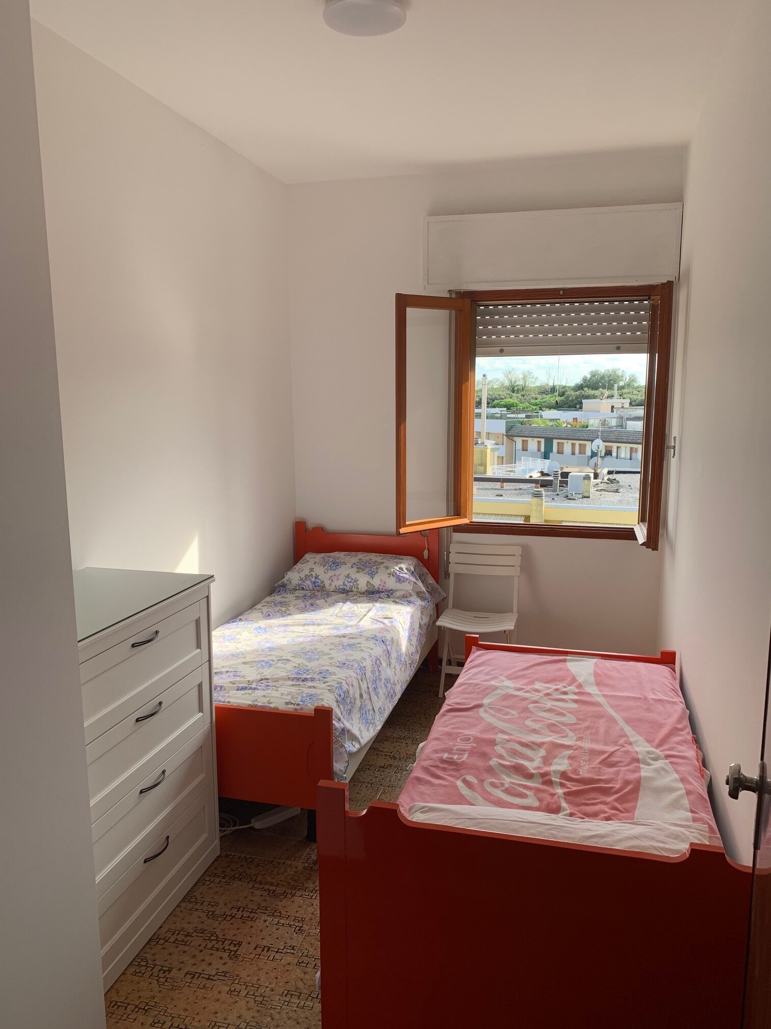 È composto da un grande soggiorno, angolo cottura in stanza indipendente, due camere da letto entrambe arredate con due letti singoli che possono essere uniti per creare un matrimoniale, un terrazzo, un bagno finestrato e un pratico ripostiglio. Dispone inoltre di posto auto riservato.