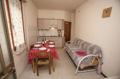 L’appartamento comprende: – un soggiorno-cucina con un divano letto ad una piazza; bagno nuovo con box doccia; 2 camere (camera matrimoniale + letto singolo e una camera con 2 letti singoli); giardino privato esterno; posto auto all’interno della proprietà; aria condizionata; TV; lavatrice; forno microonde. Classe energetica: G; Codice CIN: IT029040B4TFRN7FZZ.